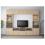Благодаря доводчикам ящики и дверцы закрываются плавно и бесшумно. Эта комбинация для ТВ предоставит достаточно места для хранения, чтоб в вашей гостиной царил идеальный порядок.