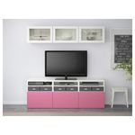 Шкаф для ТВ, комбинированный, стекляные дверцы БЕСТО, Лаппвикен розовый, Синдвик белый прозрачное стекло (180x40x192 см)