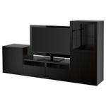 Шкаф для ТВ, комбинированный, стекляные дверцы БЕСТО, Лаппвикен, Синдвик черно-коричневый прозрачное стекло (240x40x128 см)