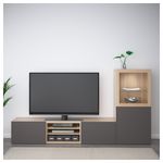 Шкаф для ТВ, комбинированный, стекляные дверцы БЕСТО, под беленый дуб Грундсвикен, темно-серый прозрачное стекло (240x40x128 см)