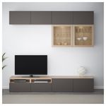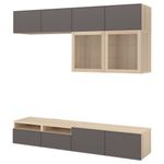 Шкаф для ТВ, комбинированный, стекляные дверцы БЕСТО, под беленый дуб Грундсвикен, темно-серый прозрачное стекло (240x40x230 см)