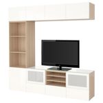 Шкаф для ТВ, комбинированный, стекляные дверцы БЕСТО, под беленый дуб под беленый дуб, Сельсвикен глянцевый/белый матовое стекло