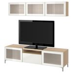 Шкаф для ТВ, комбинированный, стекляные дверцы БЕСТО, под беленый дуб, Сельсвикен глянцевый/белый матовое стекло (180x20/40x166