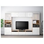 Благодаря доводчикам ящики и дверцы закрываются плавно и бесшумно. Эта комбинация для ТВ предоставит достаточно места для хранения, чтоб в вашей гостиной царил идеальный порядок.