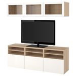 Шкаф для ТВ, комбинированный, стекляные дверцы БЕСТО, под беленый дуб, Сельсвикен глянцевый/белый прозрачное стекло (180x40x192
