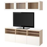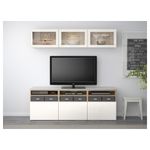 Шкаф для ТВ, комбинированный, стекляные дверцы БЕСТО, под беленый дуб под беленый дуб, Сельсвикен глянцевый/белый прозрачное