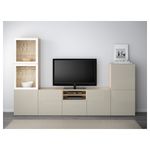 Шкаф для ТВ, комбинированный, стекляные дверцы БЕСТО, под беленый дуб, Сельсвикен глянцевый/бежевый прозрачное стекло
