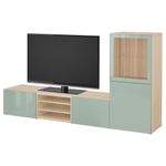 Шкаф для ТВ, комбинированный, стекляные дверцы БЕСТО, под беленый дуб Сельсвикен, глянцевый/серо-зеленый светлый прозрачное