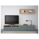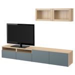 Шкаф для ТВ, комбинированный, стекляные дверцы БЕСТО, под беленый дуб, Вальвикен серо-бирюзовый, прозрачное стекло
