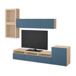Шкаф для ТВ, комбинированный, стекляные дверцы БЕСТО, под беленый дуб Вальвикен, темно-синий прозрачное стекло (300x20/40x211