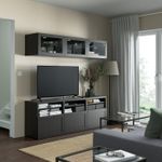 Особенности «BESTÅ БЕСТО Шкаф для ТВ, комбинированный, стекляные дверцы – черно-коричневый/Ханвикен черно-коричневый прозрачное стекло 180x42x192 см» отмеченные производителем IKЕА: