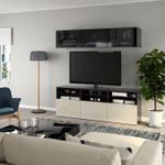 Особенности «BESTÅ БЕСТО Шкаф для ТВ, комбинированный, стекляные дверцы - черно-коричневый/Сельсвикен глянцевый, бежевый, дымчатое стекло 180x42x192 см» отмеченные производителем IKЕА: