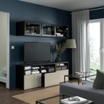 Особенности «BESTÅ БЕСТО Шкаф для ТВ, комбинированный, стекляные дверцы - черно-коричневый/Сельсвикен глянцевый, бежевый прозрачное стекло 180x42x192 см» заявленные производителем IKЕА: