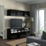 Особенности «BESTÅ БЕСТО Шкаф для ТВ, комбинированный, стекляные дверцы – черно-коричневый/Сельсвикен глянцевый, черный дымчатое стекло 180x42x192 см» отмеченные производителем IKЕА:
