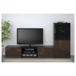 Шкаф для ТВ, комбинированный, стекляные дверцы, черно-коричневый, Сельсвикен глянцевый, коричневый дымчат стекло, 240x40x128 см IKEA БЕСТО включает в себя следующие материалы: