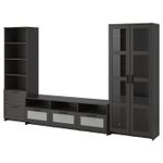 Шкаф для ТВ, комбинированный, стекляные дверцы, черный 320x41x190 см IKEA BRIMNES БРИМНЭС
