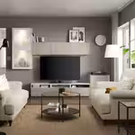 Настенные шкафчики позволяют эффективно использовать пространство над телевизором.