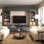 Настенные шкафчики позволяют эффективно использовать пространство над телевизором.