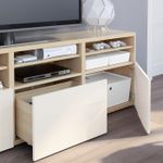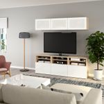 Особенности «BESTÅ БЕСТО Шкаф для ТВ, комбинированный, стекляные дверцы – под беленый дуб/Сельсвикен глянцевый, белый матовое стекло 180x42x192 см» отмеченные производителем IKЕА: