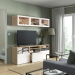 Особенности «BESTÅ БЕСТО Шкаф для ТВ, комбинированный, стекляные дверцы – под беленый дуб/Сельсвикен глянцевый, белый прозрачное стекло 180x42x192 см» заявленные производителем IKЕА: