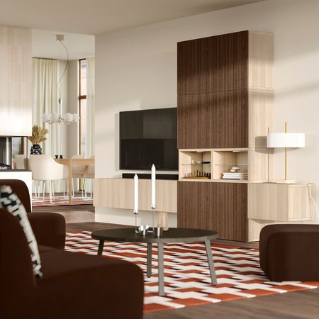 Эта комбинация поможет организовать пространство вокруг телевизора и спрятать провода.