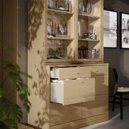 Стеклянные дверцы позволяют продемонстрировать содержимое шкафа, защищая его от пыли.