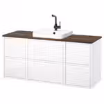 В комплект входит: 3 шкафа под раковину с ящиками, 1 столешница, 1 полуутопленная раковина, 1 сифон и 1 смеситель.