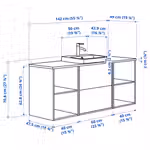 В комплект входит: 1 шкаф под раковину с ящиками, 2 открытых шкафа, 1 столешница, 1 полуутопленная раковина, 1 сифон и 1 смеситель.