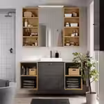 Дополните это решение зеркалом или зеркальным шкафчиком из нашего ассортимента, исходя из свободного пространства и ваших потребностей (продаются отдельно).