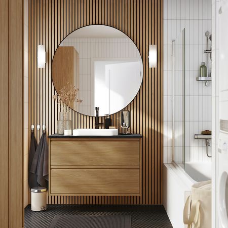 Дополните это решение зеркалом или зеркальным шкафчиком из нашего ассортимента, исходя из свободного пространства и ваших потребностей (продаются отдельно).