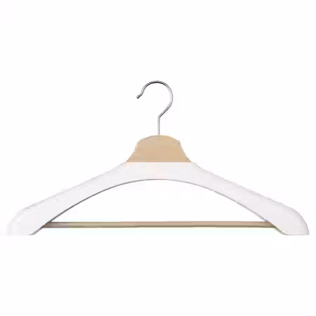 Прочные плечики из массива дерева выдержат даже тяжелые пальто.