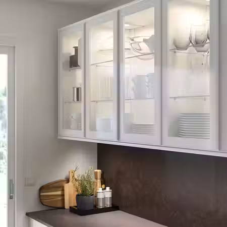 Стеклянная дверца ХЭЙСТА с белой рамой выглядит красиво и необычно.