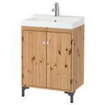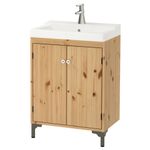 Выразительная природная фактура массива сосны придает каждому предмету мебели индивидуальный облик. Регулируемые опоры обеспечивают устойчивость и защищают от сырости на полу. Отличное решение для небольших помещений. Смеситель продается отдельно.