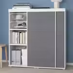 Их также можно комбинировать с дверями на петлях, фасадами ящиков и открытыми стеллажами.