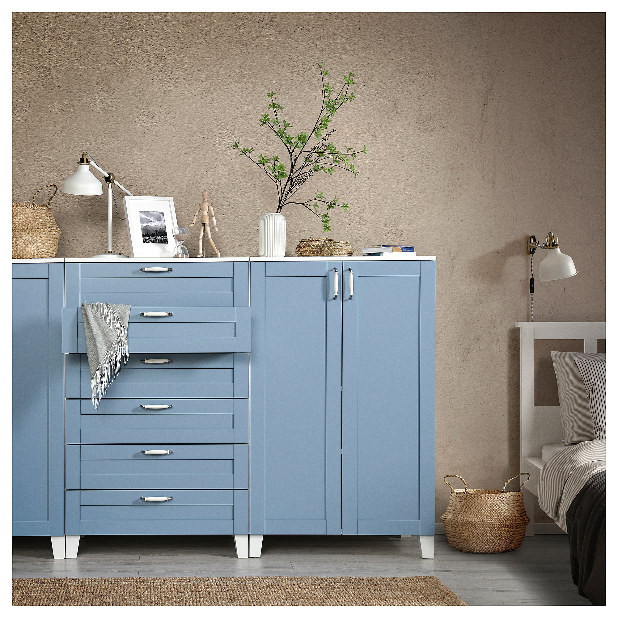 Шкаф с дверцами и ящиками, белый Sannidal синий, 240x57x133 см IKEA PLATSA ПЛАТСАA ПЛАТСА включает в себя следующие материалы: