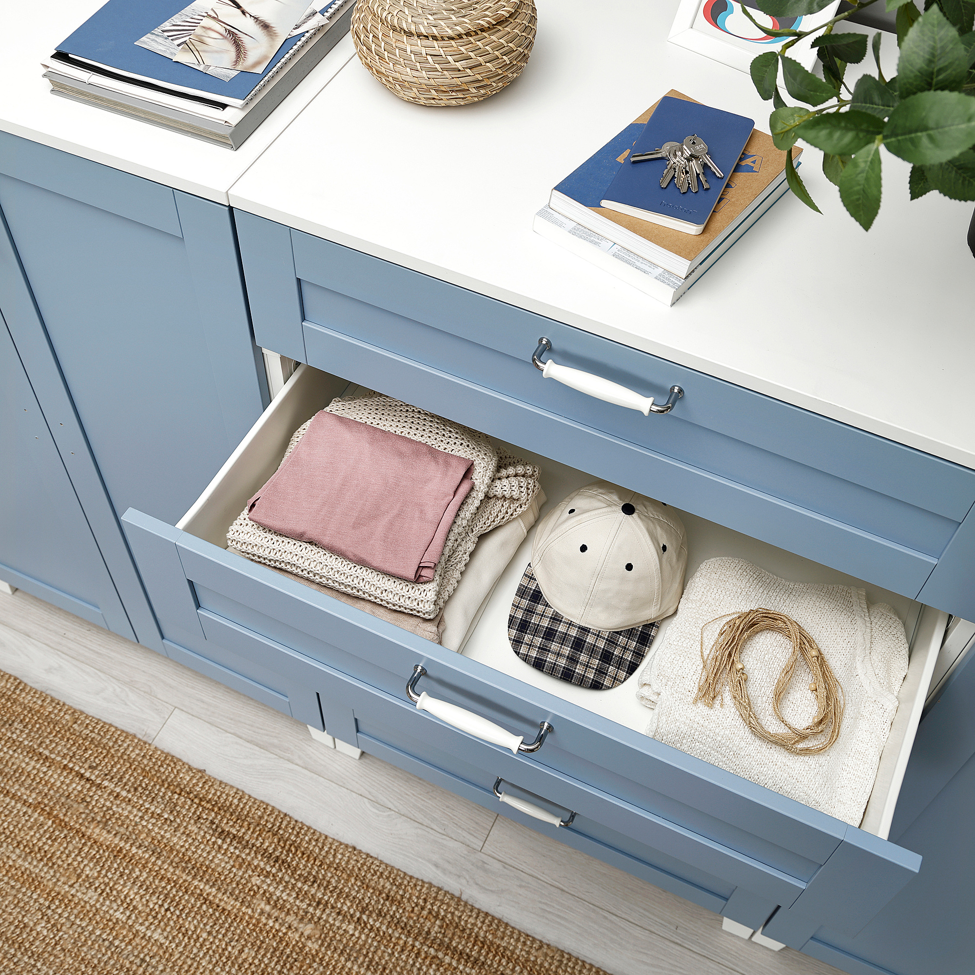 Особенности «PLATSA ПЛАТСАA ПЛАТСА шкаф с дверцами и ящиками, белый Sannidal синий, 240x57x133 см» заявленные производителем IKЕА: