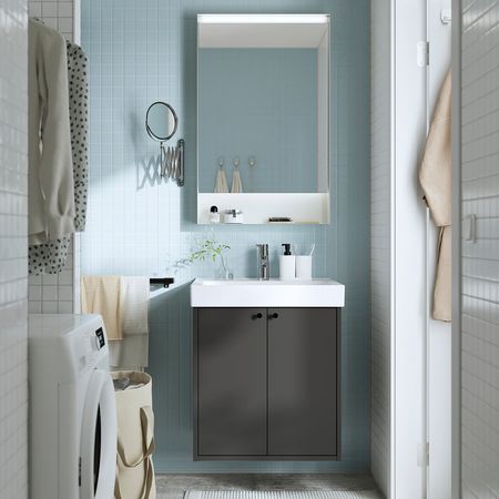 Мебель для ванной ЭНГШЁН выглядит современно и лаконично с минимумом деталей, чтобы каждый день начинался с чистоты.
