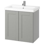 Шкаф с дверцами, раковина, смеситель, серый, серый каркас, 64x43x65 см IKEA TVÄLLEN ЛЕН ТВЭЛЛЕН, BEGIVENHET БЕГИВЕНХЕТ включает в себя следующие материалы: