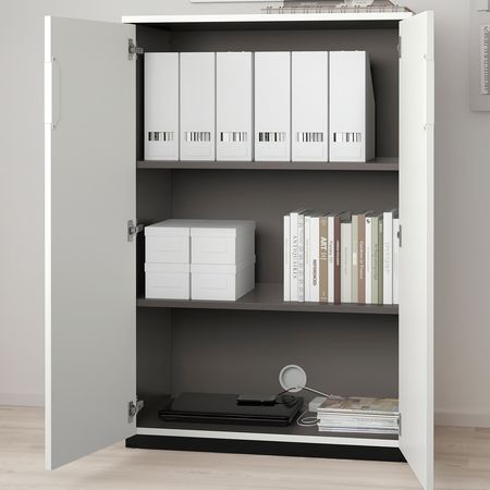 Это закрытое решение для хранения с устройствами для прокладки проводов поможет убрать все, что относится к работе и нарушает порядок. Но стоит открыть ящики, и вы сразу увидите, что в них лежит. Все это с 10-летней
