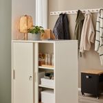 Раздвижные дверцы запираются, поэтому вы можете спокойно хранить за ними свои личные вещи.