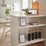 Заднюю панель шкафа можно установить сзади или в середине как перегородку, чтобы обеспечить доступ к содержимому с двух сторон, с одной из которых будут раздвижные дверцы, а с другой — открытые полки.