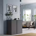 Вся мебель для хранения серии VIHALS выполнена в едином стиле, что позволяет визуально объединить разные комнаты. Комбинация из двух шкафов-витрин помогает закрыть разные потребности в хранении, а её минималистичный дизайн впишется в любой интерьер.