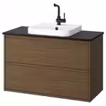 В комплект входит: 1 шкаф под раковину с ящиками, 1 столешница, 1 полуутопленная раковина, 1 сифон и 1 смеситель.