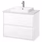 Глянцевая отделка белого цвета придает мебели изящный современный вид, который подчеркивается интегрированными ручками.