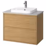 Современный стиль мебели для ванной из серии ÄNGSJÖN подчеркивается интегрированными ручками и лаконичным дизайном.