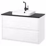 В комплект входит: 1 шкаф под раковину с ящиками, 1 столешница, 1 полуутопленная раковина, 1 сифон и 1 смеситель.