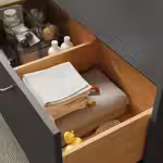 Дополните этот шкаф с полуутопленной раковиной и столешницей ручками по вашему выбору, и он станет стильным центром ванной комнаты.