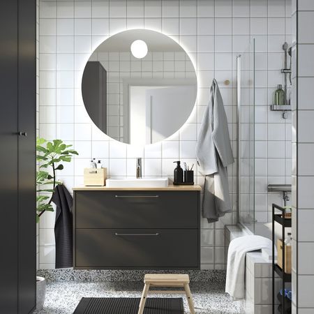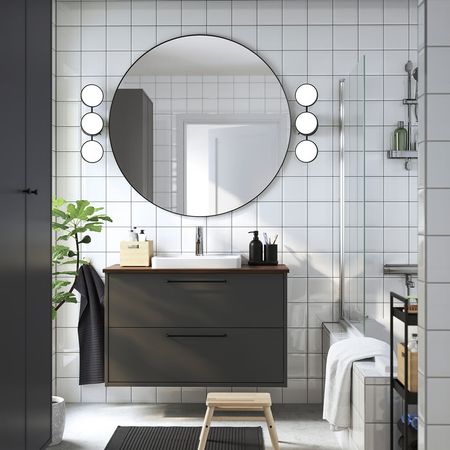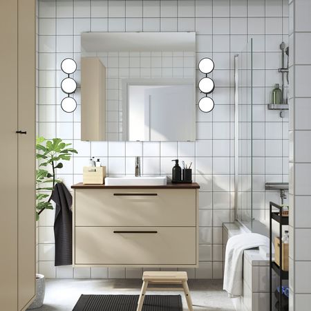 Мебель для ванной серии ХАВБЭКК отличается лаконичным дизайном.
