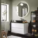 Мебель для ванной ЭНГШЁН выглядит современно и лаконично с минимумом деталей.