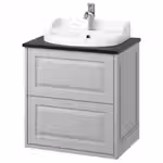 В комплект входит: 1 шкаф под раковину с ящиками, 1 столешница, 1 полуутопленная раковина, 1 сифон и 1 смеситель.